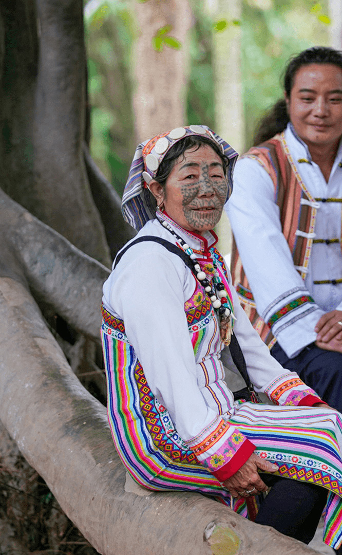 德昂族人口約1.7萬,主要分布在德宏州和保山市的潞西、梁河、瑞麗、隴川、隆陽等縣區(qū)。民居多為草排覆頂竹木結構的干欄式建筑,眼前的德昂村建筑納入了能容納數(shù)十人居住的德昂大房子,氈帽頂?shù)男》孔樱€有頗具浪漫色彩的大公房、小公房……還建有“龍陽塔”標志及佛教奘房、佛塔。德昂族民間普遍信奉南傳佛教,民俗活動與佛事活動關聯(lián)緊密。潑水節(jié)、開門節(jié)、關門節(jié)是重大節(jié)日。德昂族服飾色彩豐富,口頭文學特別是民歌創(chuàng)作活動...