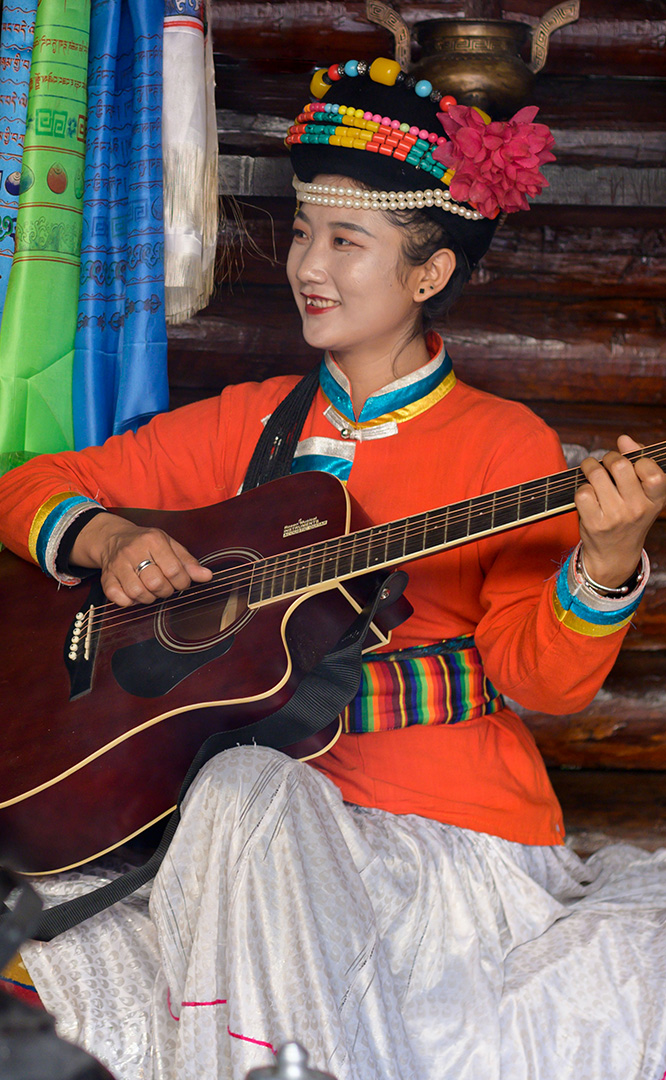摩梭人是納西族的一個支系,多聚居在寧蒗縣永寧鄉(xiāng)的瀘沽湖畔,人口約8萬。摩梭民居就地取材,用圓木橫壘為墻,建成合院式寨樓居住,這類井干式建筑又稱木楞房,具有較好的御寒保溫性能,體現(xiàn)了順應自然的生態(tài)觀。摩梭人保留了母系大家庭的基本形態(tài),呈現(xiàn)在您眼前的是一個完整的摩梭家庭的四合院,由正房、經(jīng)堂、花樓、門樓等構成,正房坐北朝南,通稱祖母房。居住一家中最年長的女性,同時也是一大家人飲食、待客、議事的核心場所...